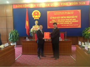 Hình ảnh Chủ tịch OTV nhận giấy chứng nhận đầu tư ngày 23/01/2013 tại UBND Tỉnh Vĩnh Phúc